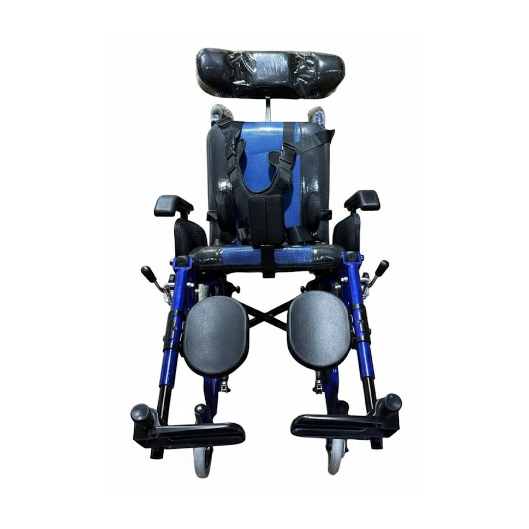 This wheelchair provides enhanced support and comfort for individuals with cerebral palsy and other mobility challenges. Suitable for pediatric and adult users, it features a reclining function to improve posture and reduce pressure during extended use.
