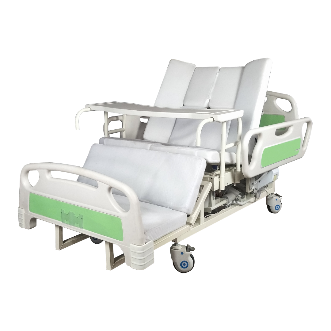 This 3-crank electric hospital bed offers comfort, safety, and convenience for both patients and caregivers. It features adjustable backrest, kneerest, and bed height for optimal positioning and support.