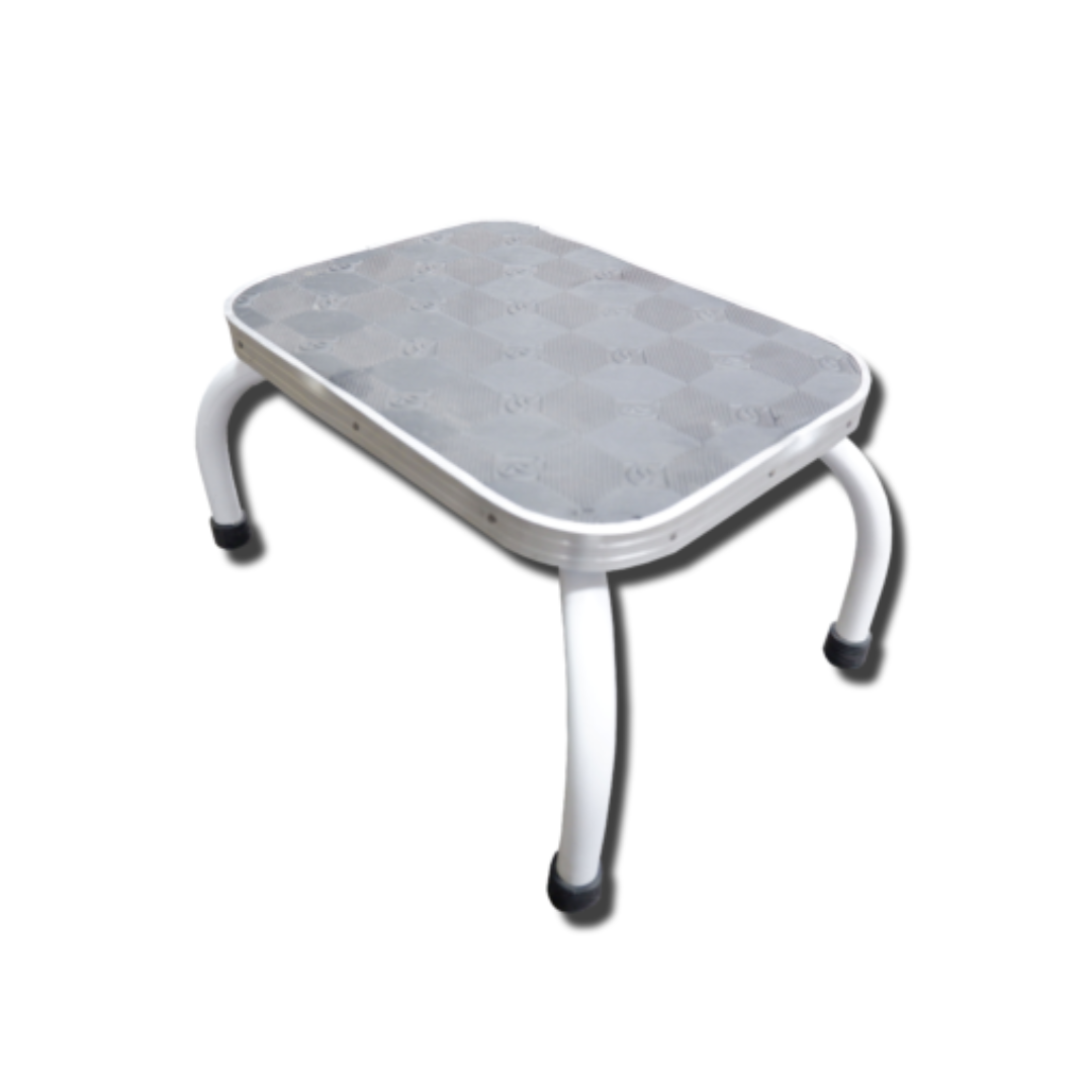 Ideal for hospitals, clinics, or home use, this sturdy footstool features a durable tubular frame with aluminum-reinforced edges for extra stability. Its corrugated, non-slip rubber top and rubber-capped legs ensure safe, secure footing.